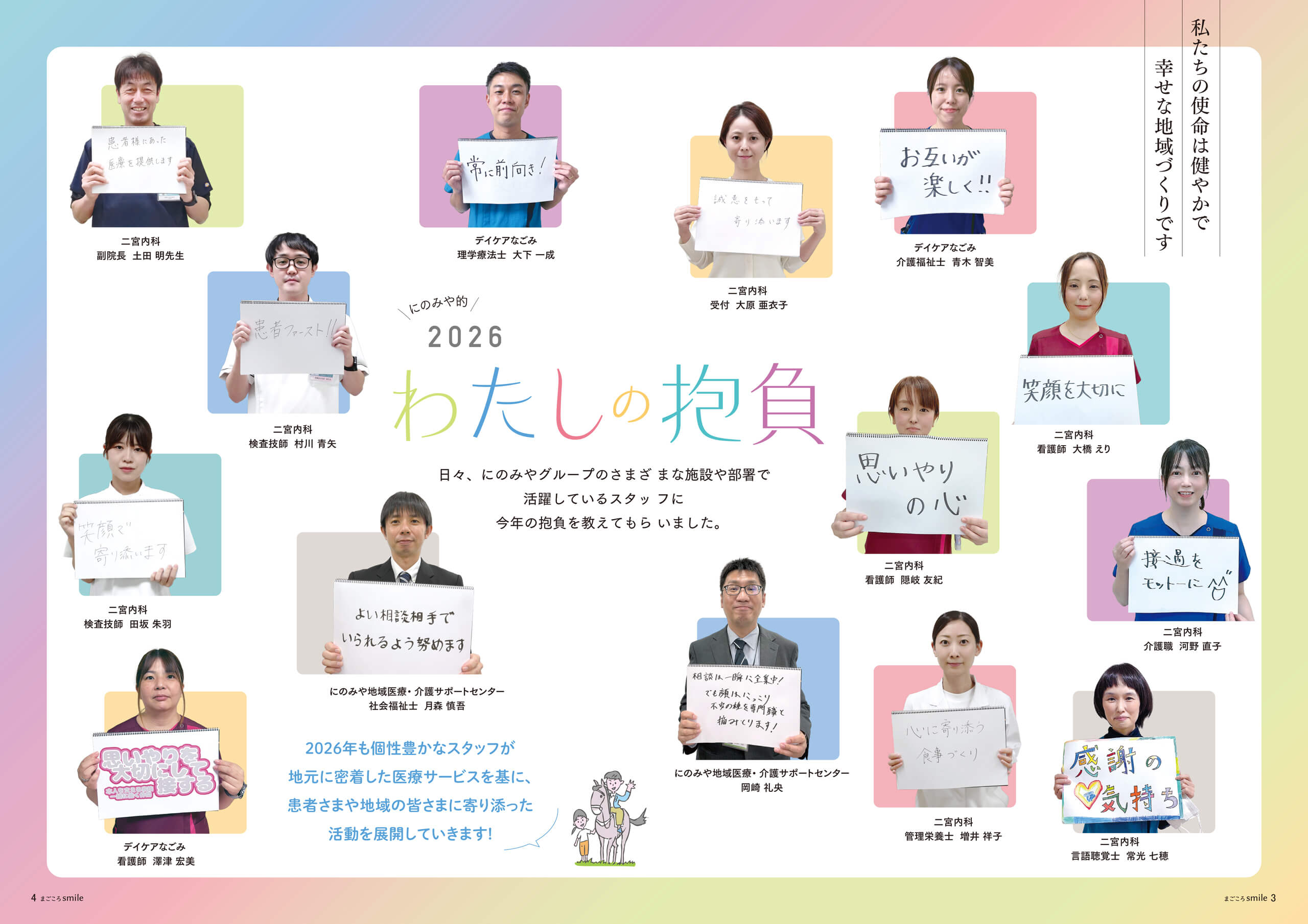 まごころスマイルは、地域の方々に『私たちにできること、できる分野』を知って頂くための広報誌です。職員で運営している広報委員会が作成しています。